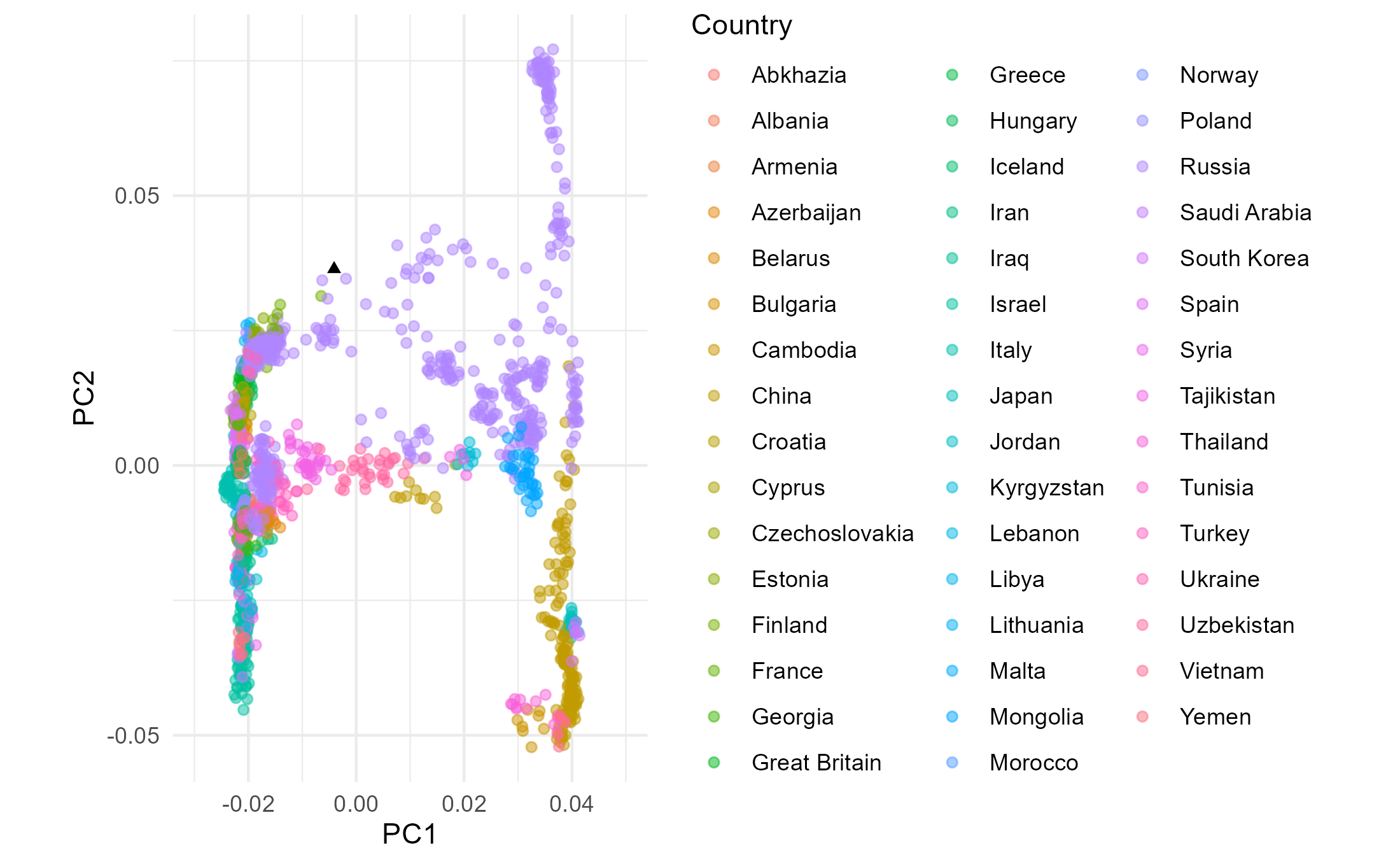 indsmetadata <- janno::read_janno("scratch/forged_package/PCA_package_1.janno", to_janno=F)%>% select(Poseidon_ID, Latitude, Longitude, Country) %>% mutate(Longitude=as.double(Longitude), Latitude=as.double(Latitude))