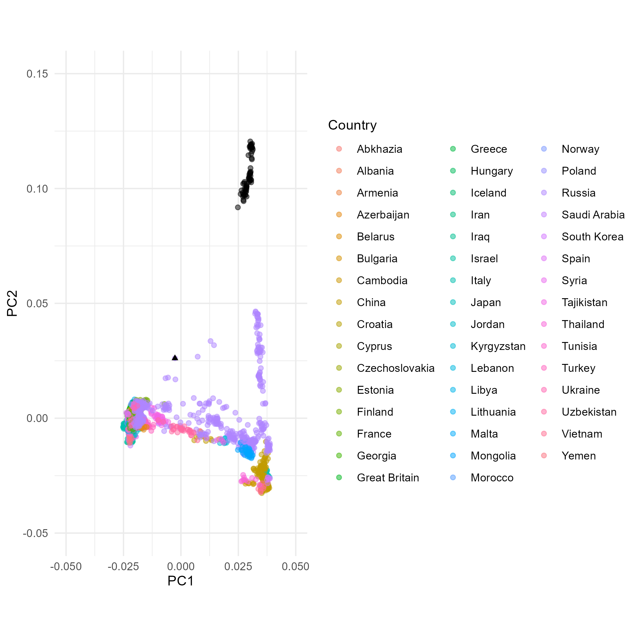 geom_point(data=moderns_pl2 %>% filter(Country=="Brazil" | Country=="Mexico"), #Plotting the additional American populations separately to keep colors for other countries the same between the plots