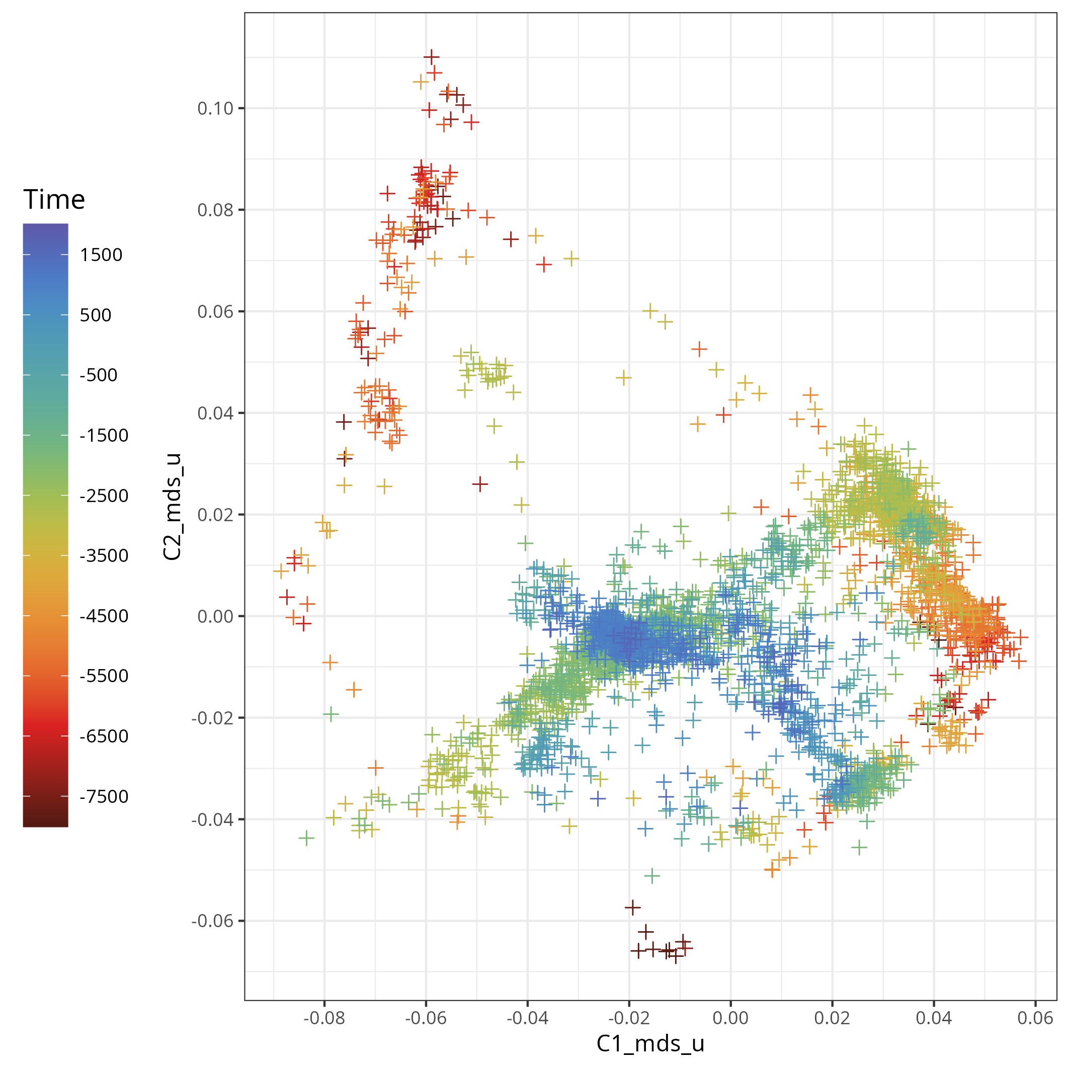 | MDS_C1 | dbl | The coordinate of this sample on dimension 1 of an MDS analysis. See Schmid and Schiffels (2023) for more details on how this was obtained |