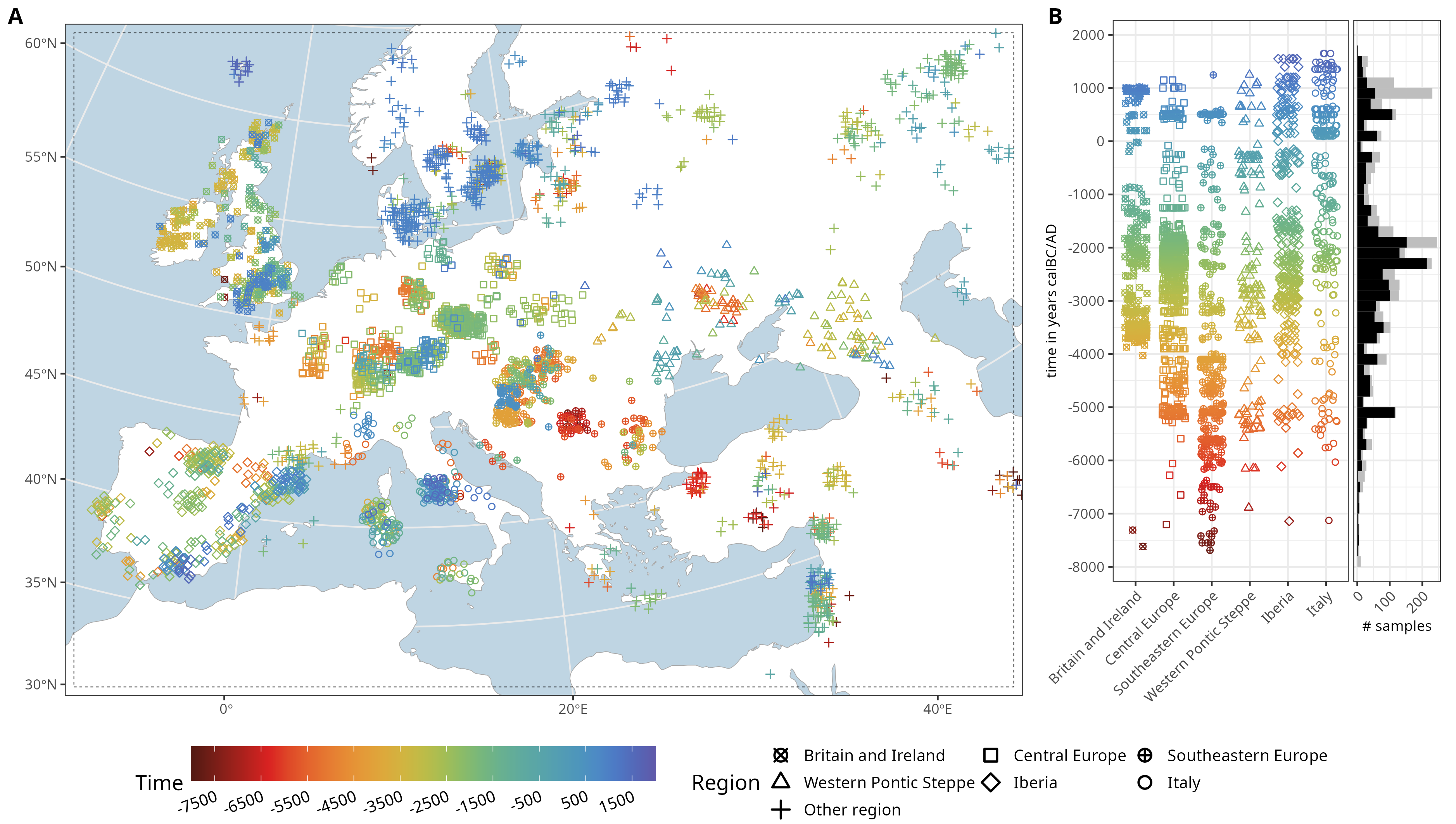 For this tutorial we rely on the data used and published in Schmid and Schiffels (2023). You can download a simplified version of this dataset here (samples_basic.csv) and load it into R.