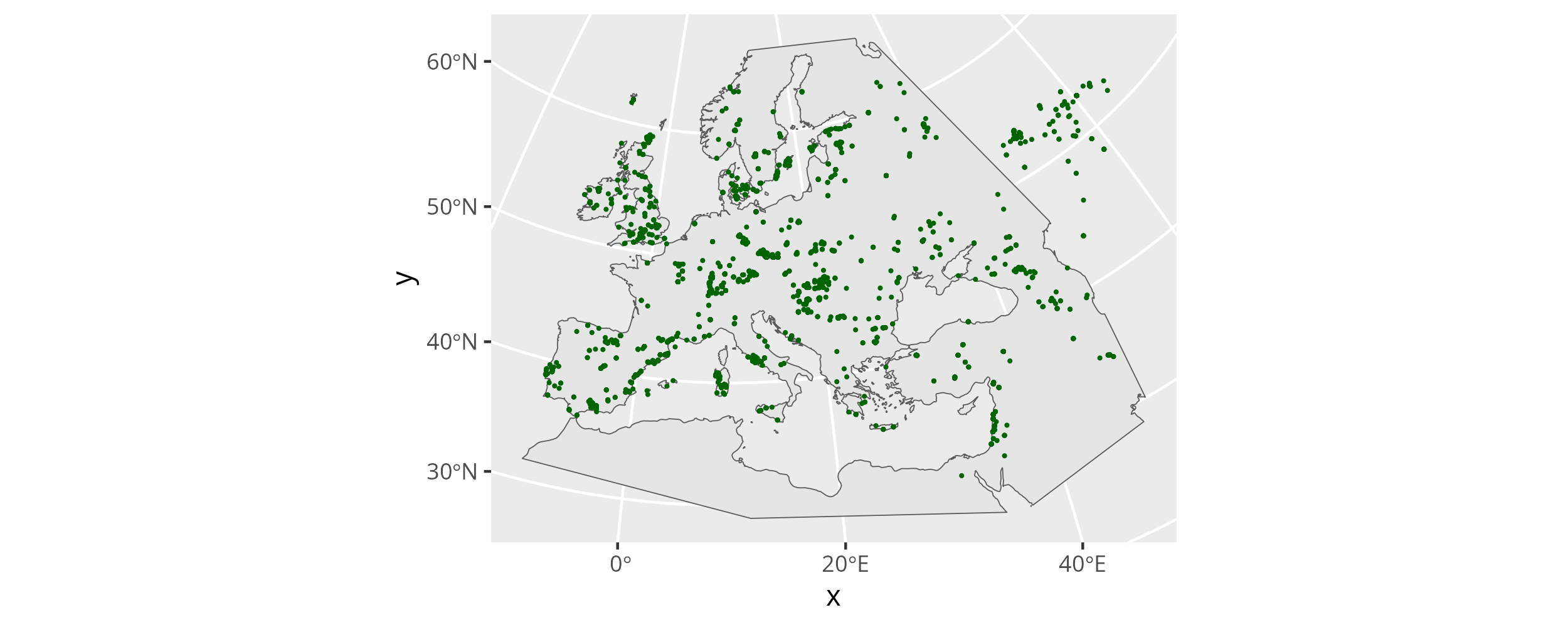 But for mobest we ideally want to represent all them accurately. mobest is therefore unfit for origin search on a global scale, but can usually be well applied for individual countries with the projections recommended by their cartographic agencies. For an intermediate, continental scale, as in this example, we have to choose our CRS wisely.
