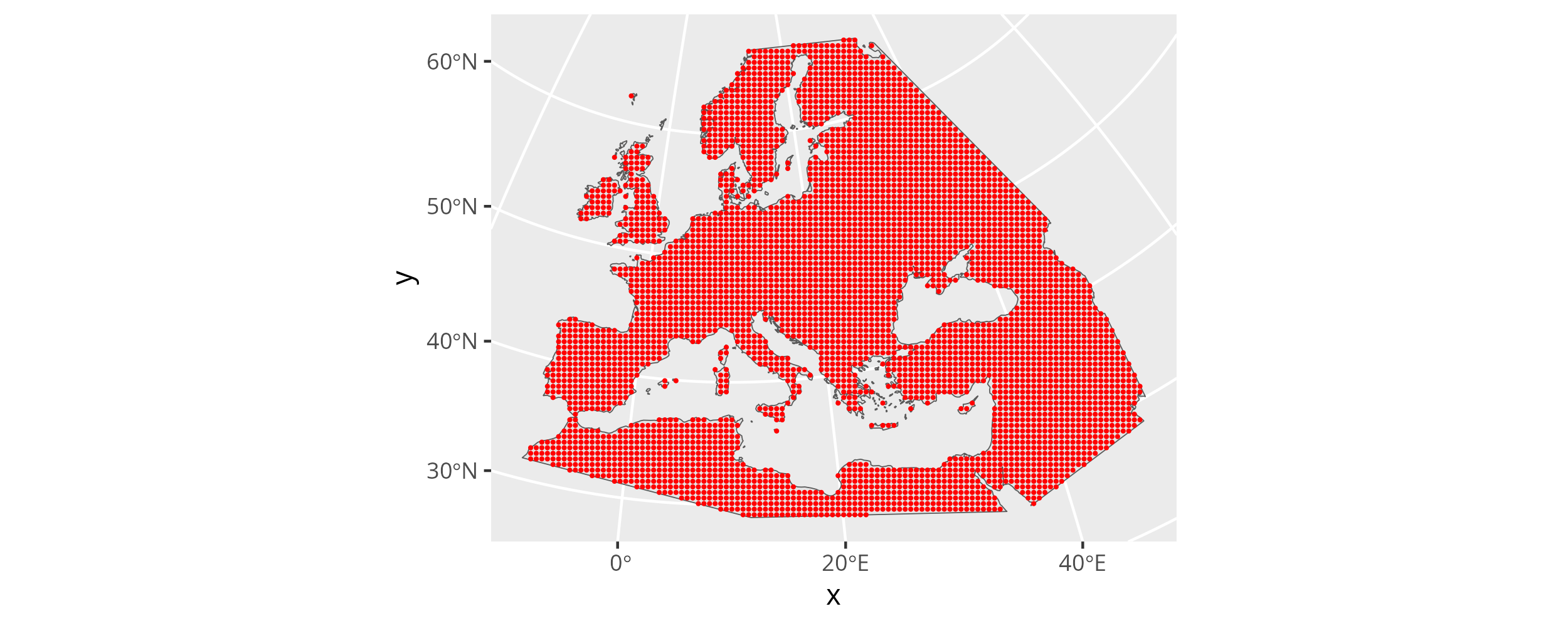 create_prediction_grid returns an object of class mobest_spatialpositions, which is derived from tibble::tibble(). That means we can print it on the R console and it will behave as a tibble. It will also work seamlessly as an input for ggplot2, which we can now use to visualize the point cloud.