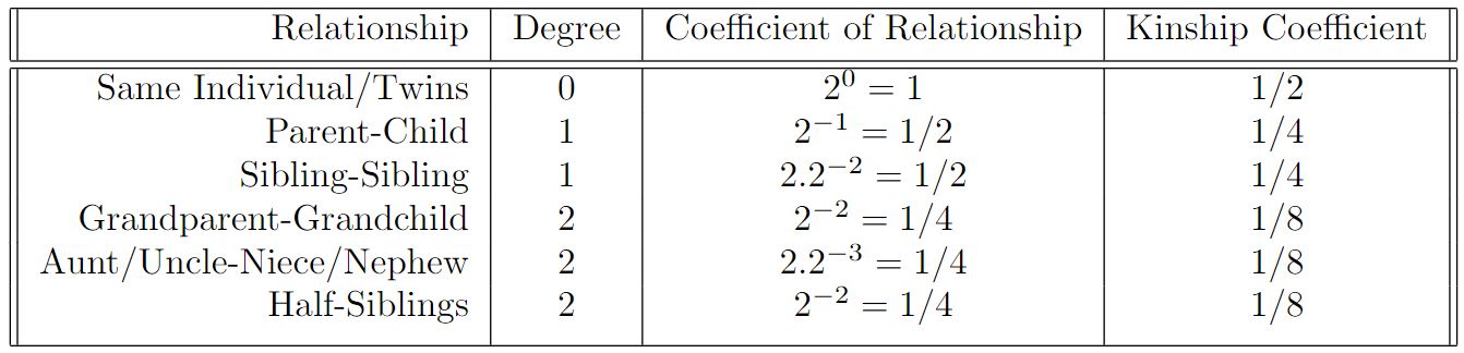 - Ability to differentiate between different types of first-degree relationships (ie. full siblings vs parent-offspring; requires at least 10,000 effectively overlapping SNPs).