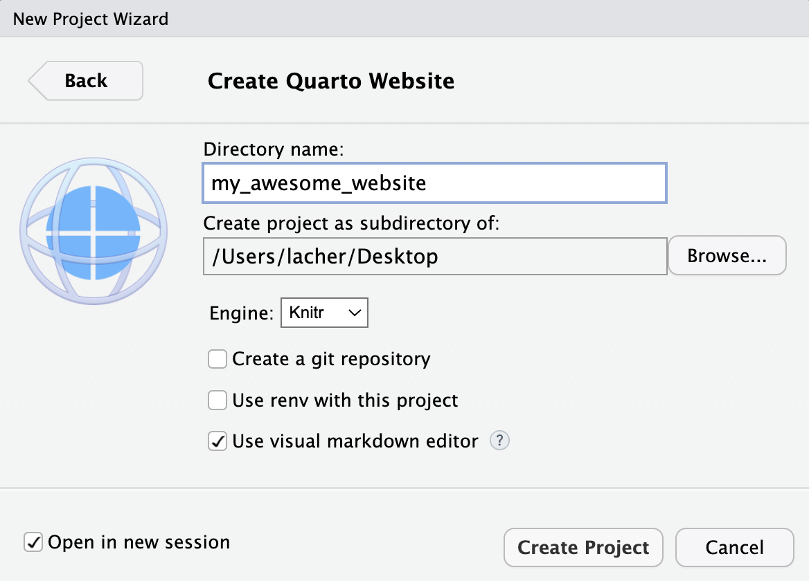 Now we are ready to set up a quarto document.
