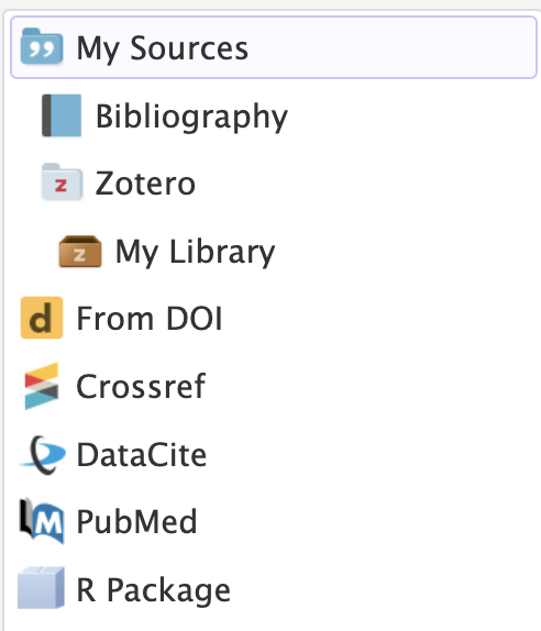 Depending on which citation program you are using, quarto is able to connect to it (Zotero works, for example). So, when selecting to insert a Citation, you can choose to simply add a reference from your program.