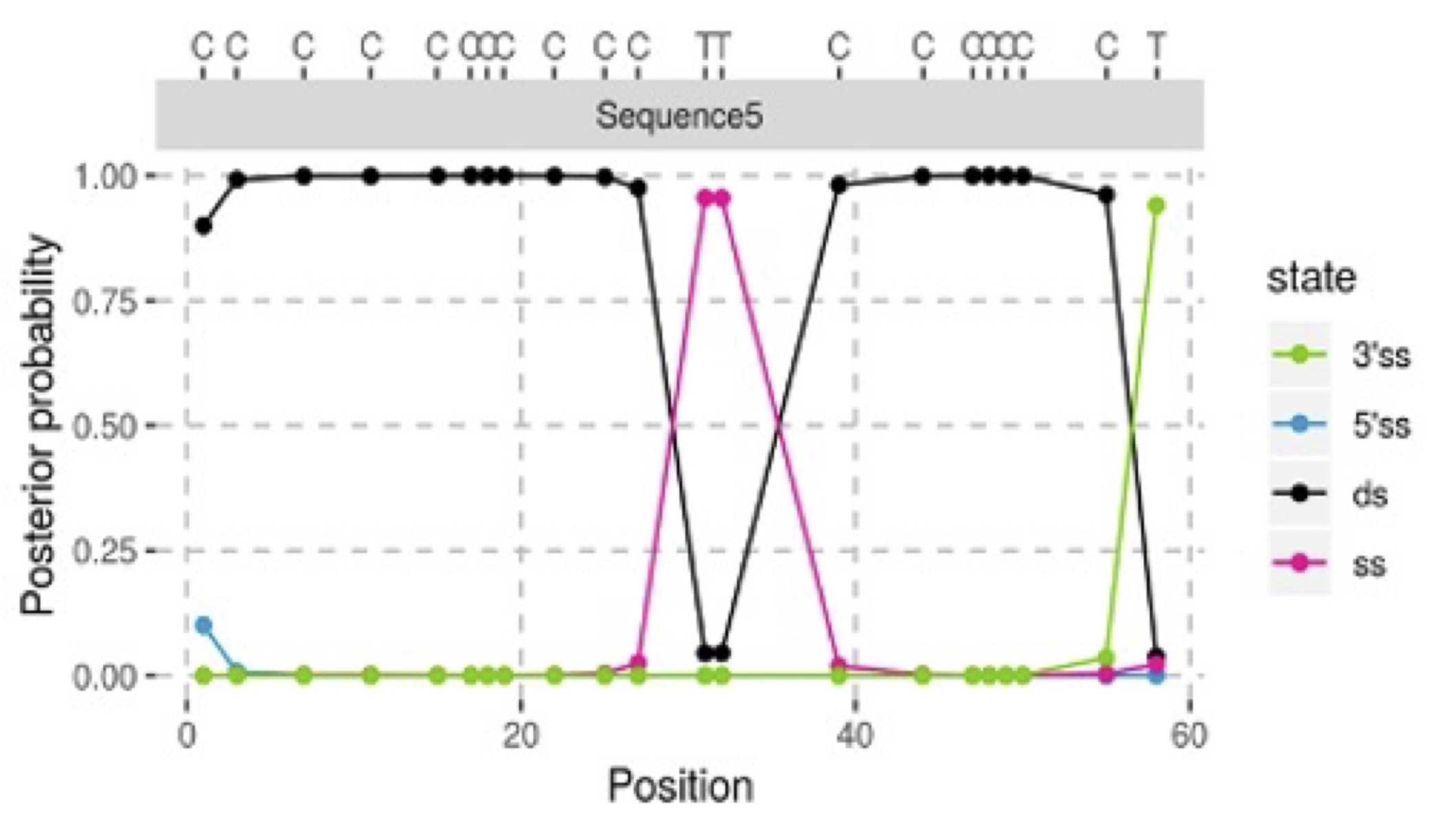 AuthentiCT uses a a hidden Markov model (HMM)—a statistical model for predicting a sequence of unseen state changes based on observed sequences—to jointly model all C-T substitutions.