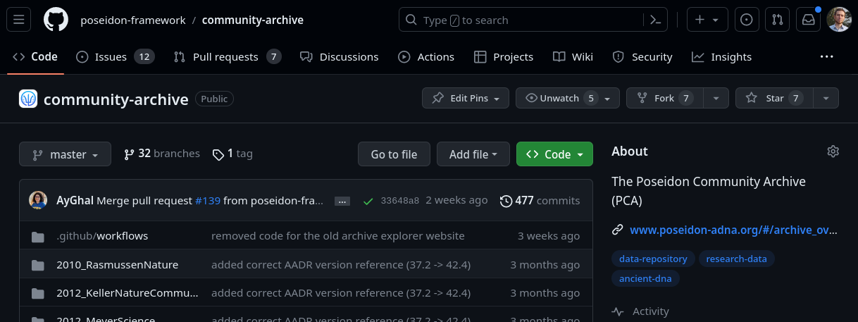 The Poseidon community maintains public archives for Poseidon packages to establish a central open point of access for published archaeogenetic genotype data.