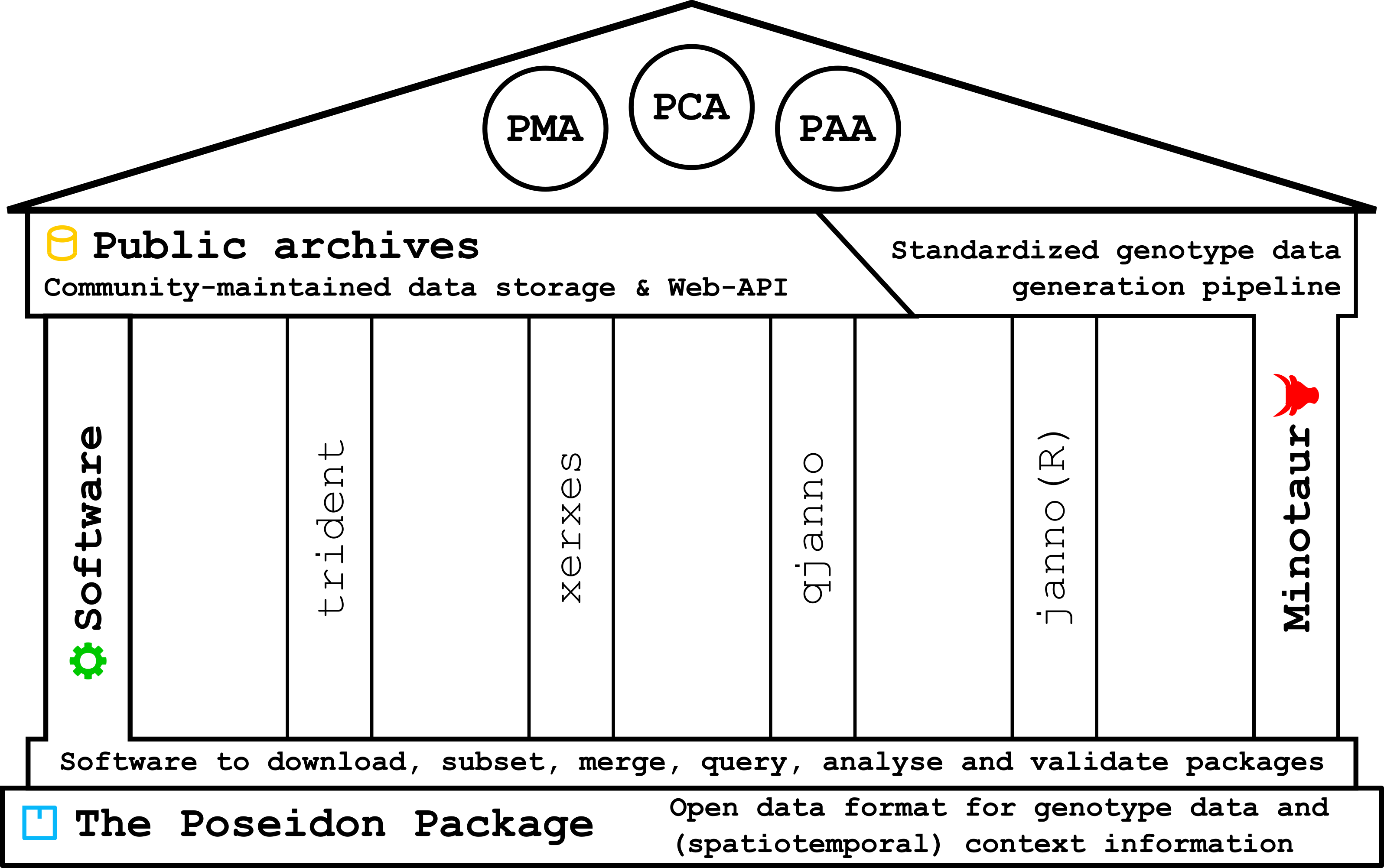 Poseidon is an open computational framework to enable standardised and FAIR (Wilkinson et al. (2016)) handling of genotypes with their highly relevant context information.
